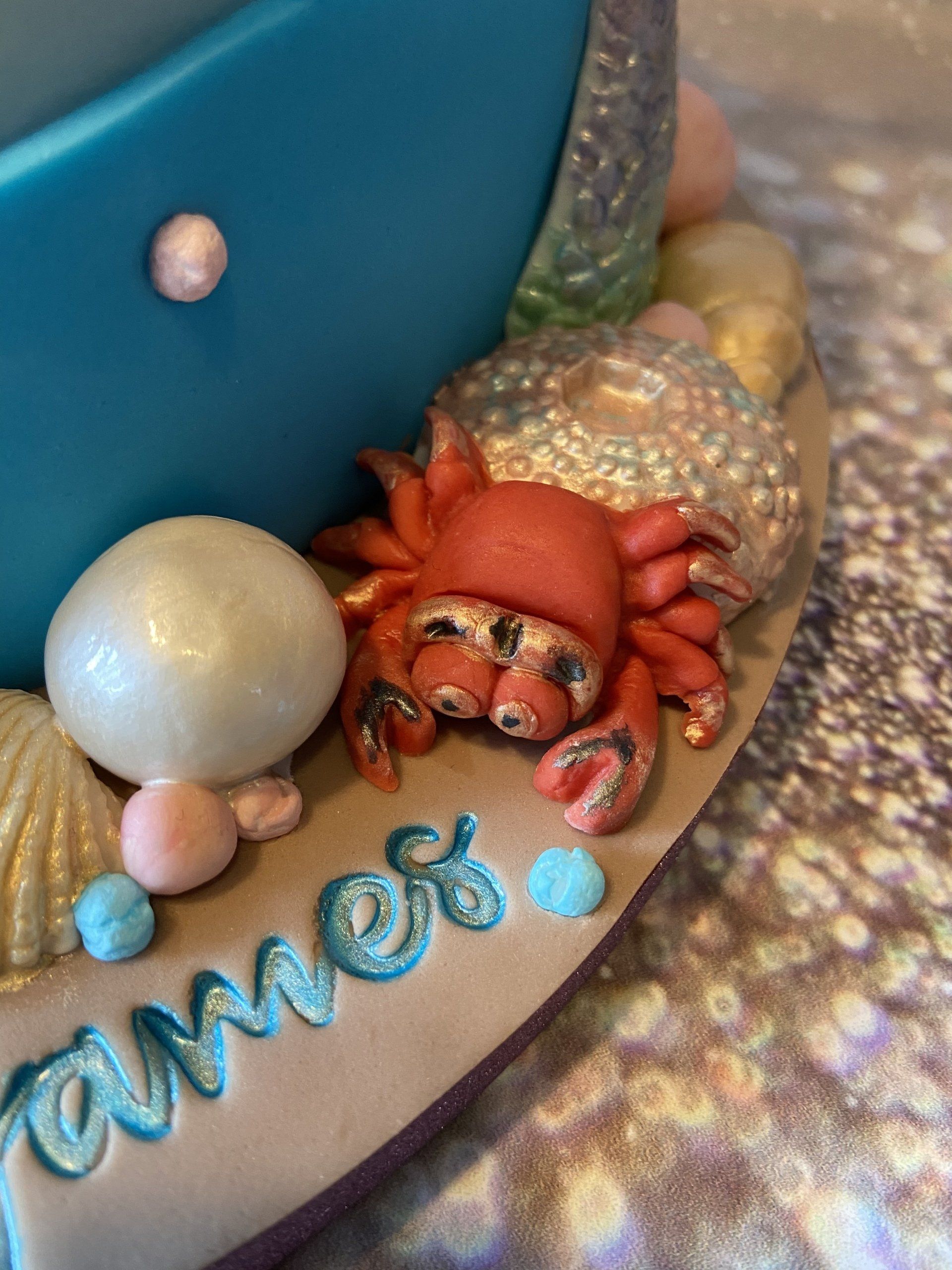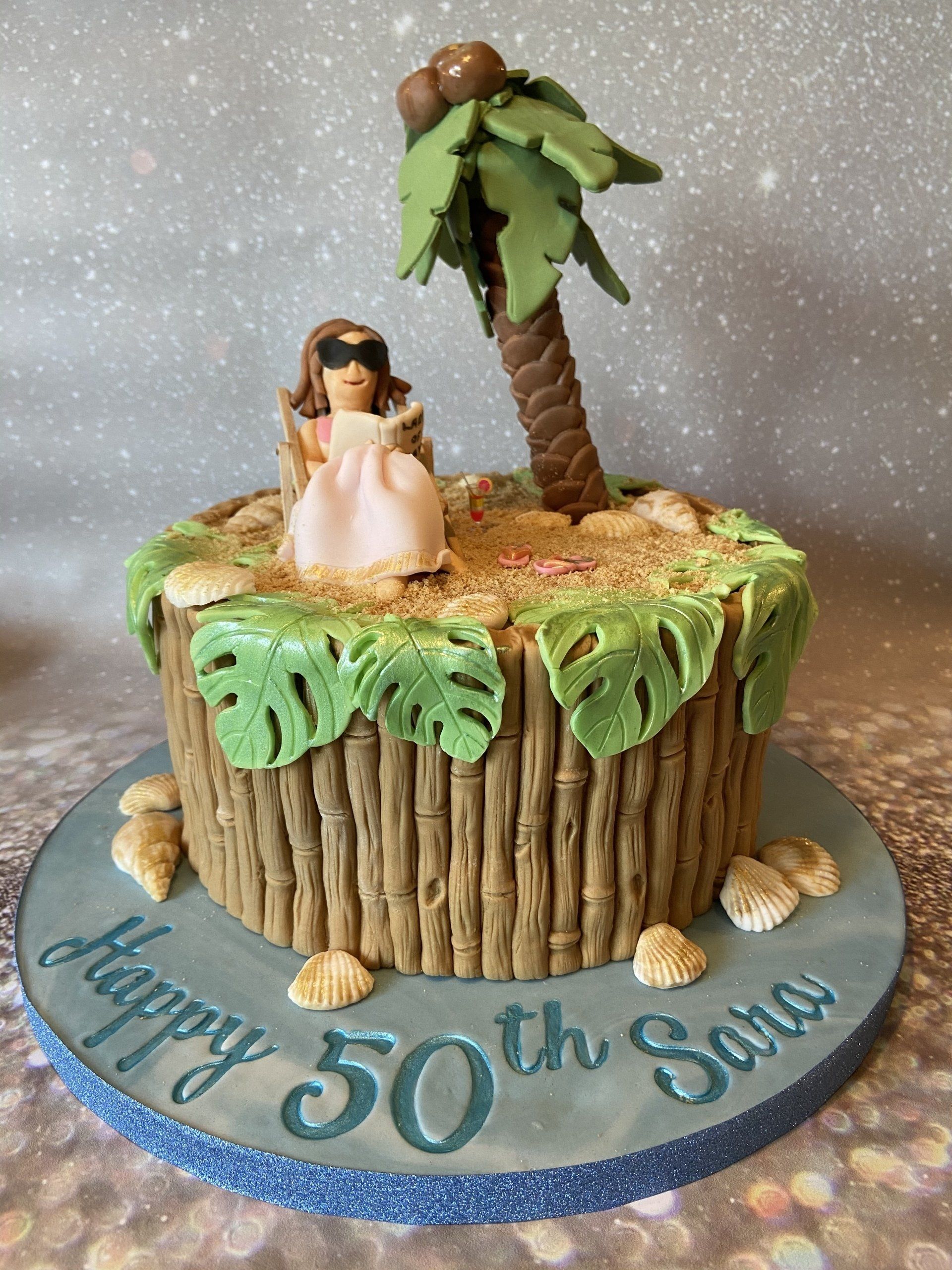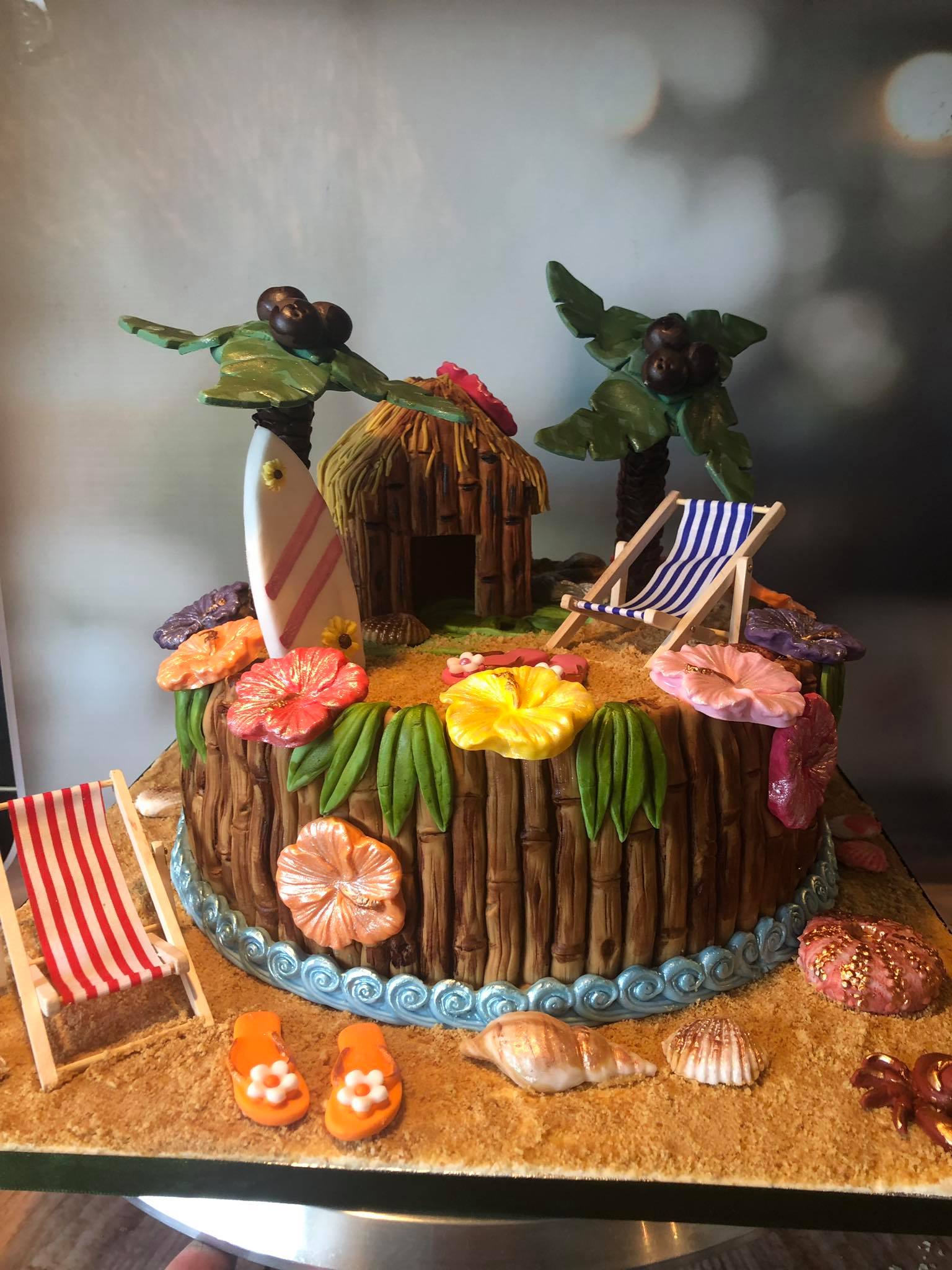 I can't say enough good things or recommend Cathy at Sugar & Slice Cakes highly enough. As I live in the USA, Cathy worked with my sister in England to make our idea for my 'Hawaii Five-0' themed birthday cake come to life, complete with palm trees, tiki hut, edible sand, shells, flip flops, tons of beautiful flowers, and my personal favourite, the cute crab! 🦀